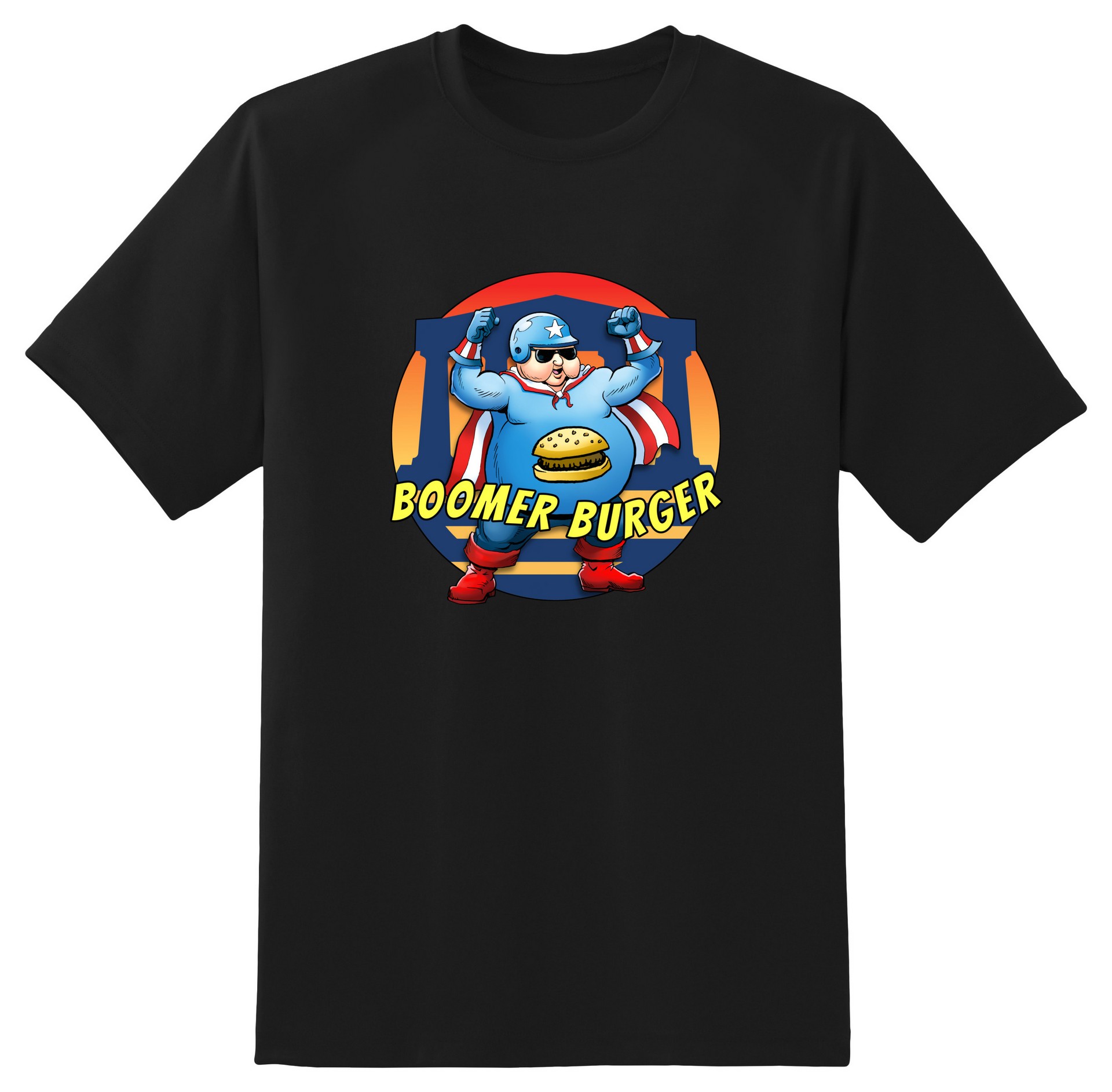 ...Frankly, he’s a human blob—indeed, the archetype of one, the perfected Platonic form. These are not “weightist” statements, mind you; they are objectively true, and the jovial Dean proudly refers to himself as such. His superpower is a combination of terrific strength, crushing weight, and—thanks to a uniquely elastic constitution—incredible bounciness. Indeed, his delicious Boomer Burgers may induce the regular eater to assume the same superpowers, assuming they possess the same sturdy alien constitution. Otherwise, they will eventually cause spontaneous combustion—preceded, of course, by many horrific stages leading up to it. Though in theory, this is not why they are called Boomer Burgers.