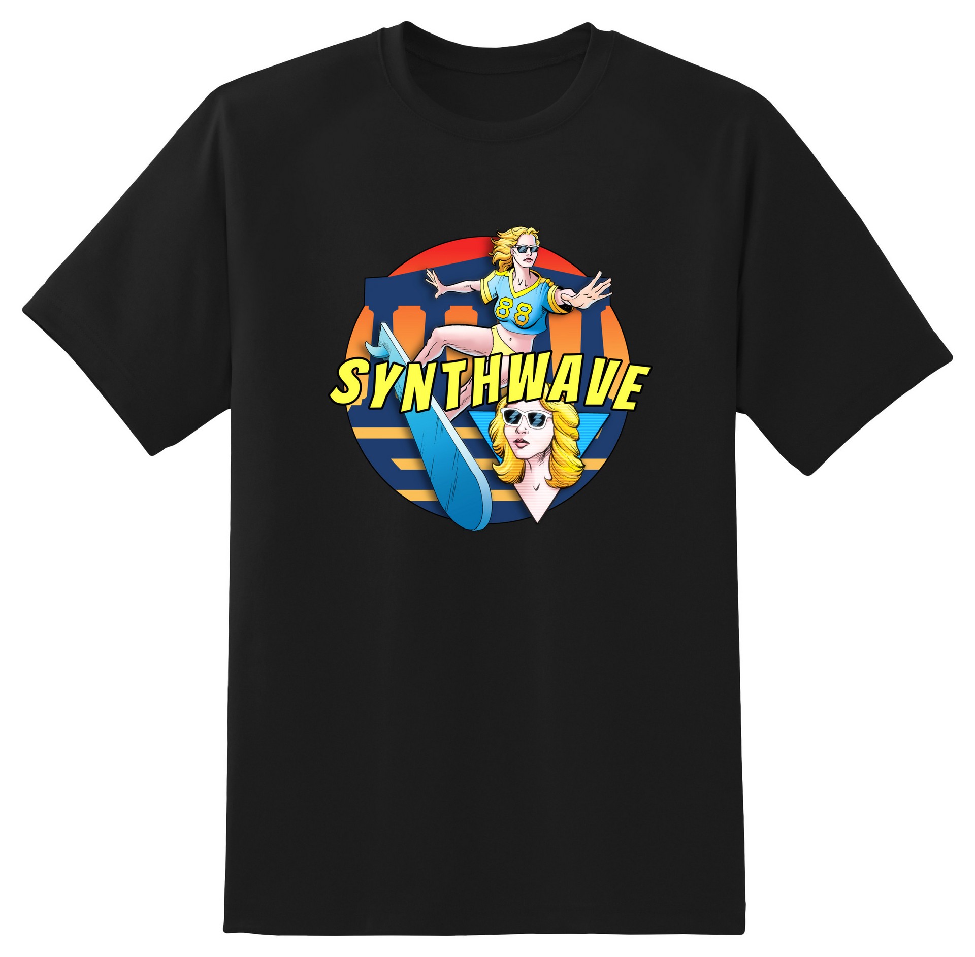 ... spirit accidentally summoned by Uber-Chad and Neuro during a music based wellness experiment. Believed to be part AI, part interdimensional entity, she manifests as a digital, multichromatic, beautiful, bikini-and-crop-top-clad woman, perpetually shifting between neon magenta, blue, purple, pink, and cyan, while flickering with intermittent VHS tracking artifacts. She wears an ’80s feathered hairstyle and is almost always atop an airborne surfboard. Her songs inspire allies into superhuman synchronicity but may also disrupt judgment, trigger psychic dislocation, and induce anemoia—a nostalgic trance for a time never lived. In some cases, listeners experience non-corporeal time travel into ghost-versions of the 1980s, where they may become trapped. She may paralyze foes with sonic force and propels herself through the air at Mach 2 atop a visible, destructive soundwave. After a brief but intense platonic romance, Chad reluctantly released her into the world in 2014 with the anonymous album 1988. They think of each other often.