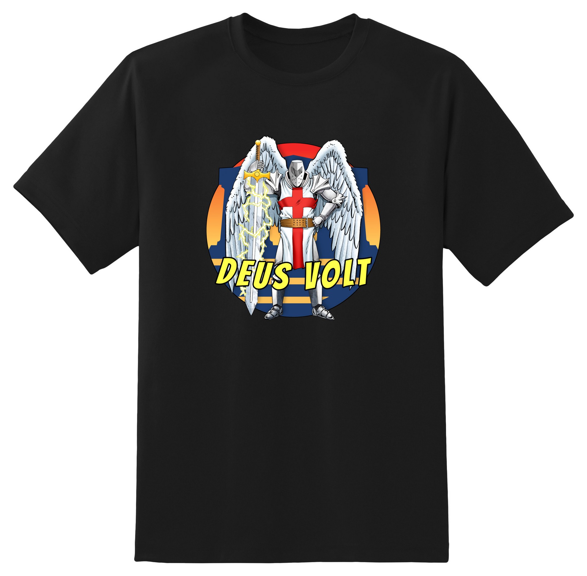 ...superhero team known as the Godgang, which includes Trad Cat, Ortho-Bro, and Flamer. Volt directs the Godgang in their service to the Lord, protecting and favoring those who follow His will. One rumor suggests that, though he does not appear publicly as a winged crusader of God, Deus Volt is in fact the United States Secretary of Defense, Paul Hyland. Much of this speculation stems from the curious Jerusalem cross tattoo emblazoned on Hyland’s chest. Deus Volt also takes his name especially from his “electrical nature.” Lightning emanates from his body at will, and he was once the preferred lightning hurler among "the Elohim," which includes the Lord and His angels. Deus Volt’s name, referring to his electrical nature, is obvious related to the Latin phrase Deus Vult (“God Wills it”). Naturally the angel does not object to this variant spelling.